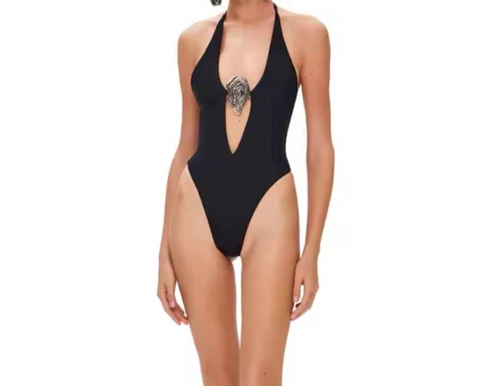 Women Sexy Fashion Color-Block Backless Swimsuit