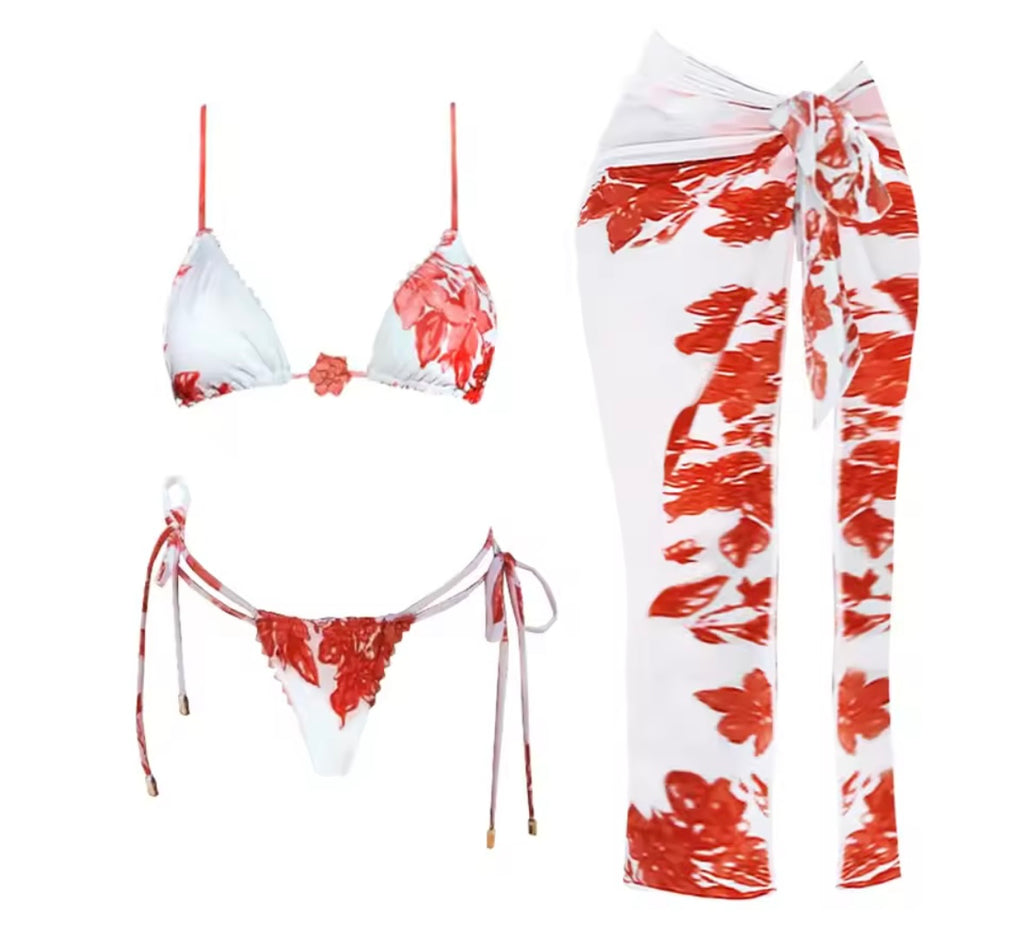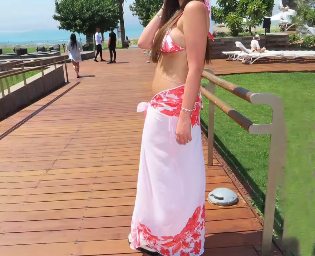 Women Sexy White Floral Bikini Cover Up Set