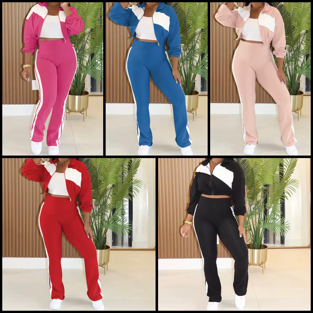 Women Fashion Faux Leather Two Piece Black Jacket Pant Set