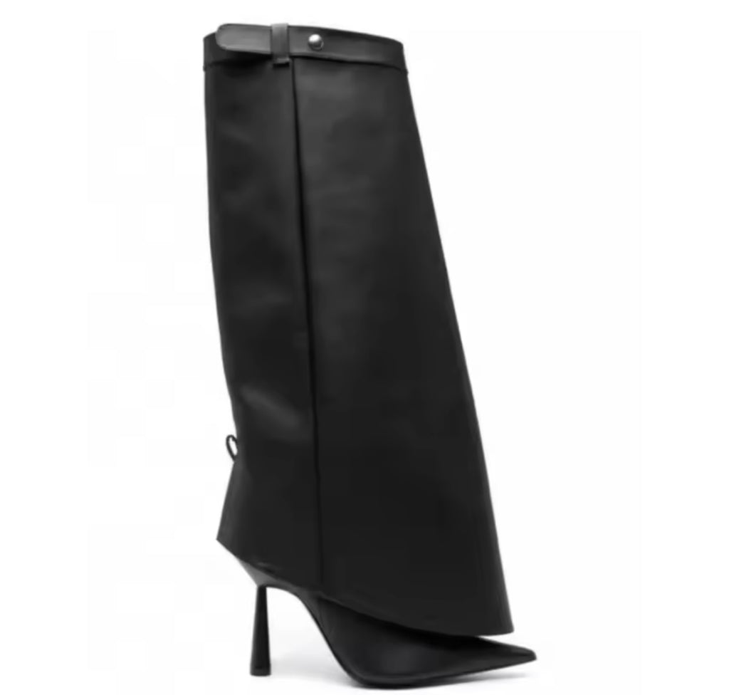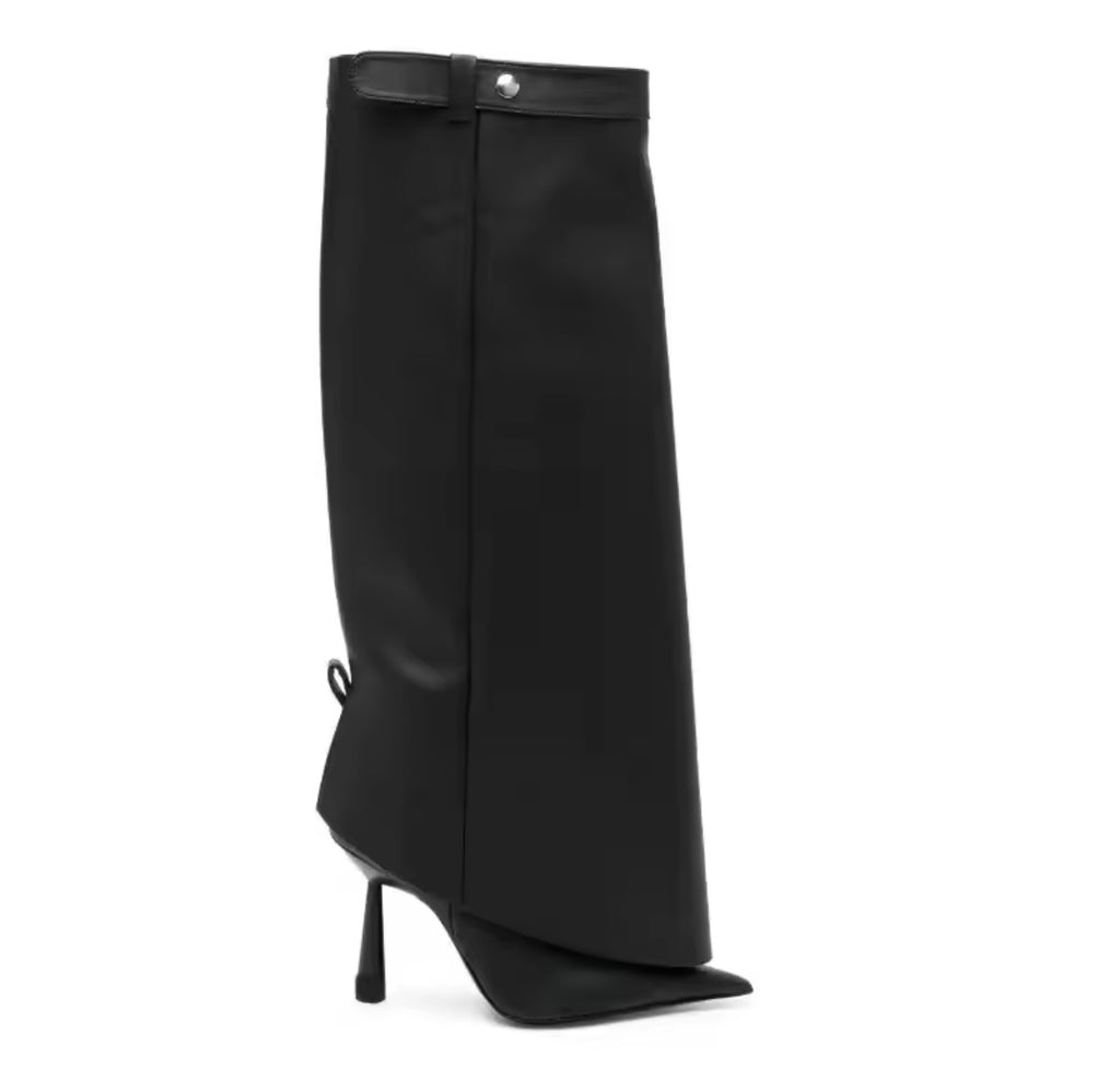 Women Black Buckled Chain Back Zipper Knee High Boots