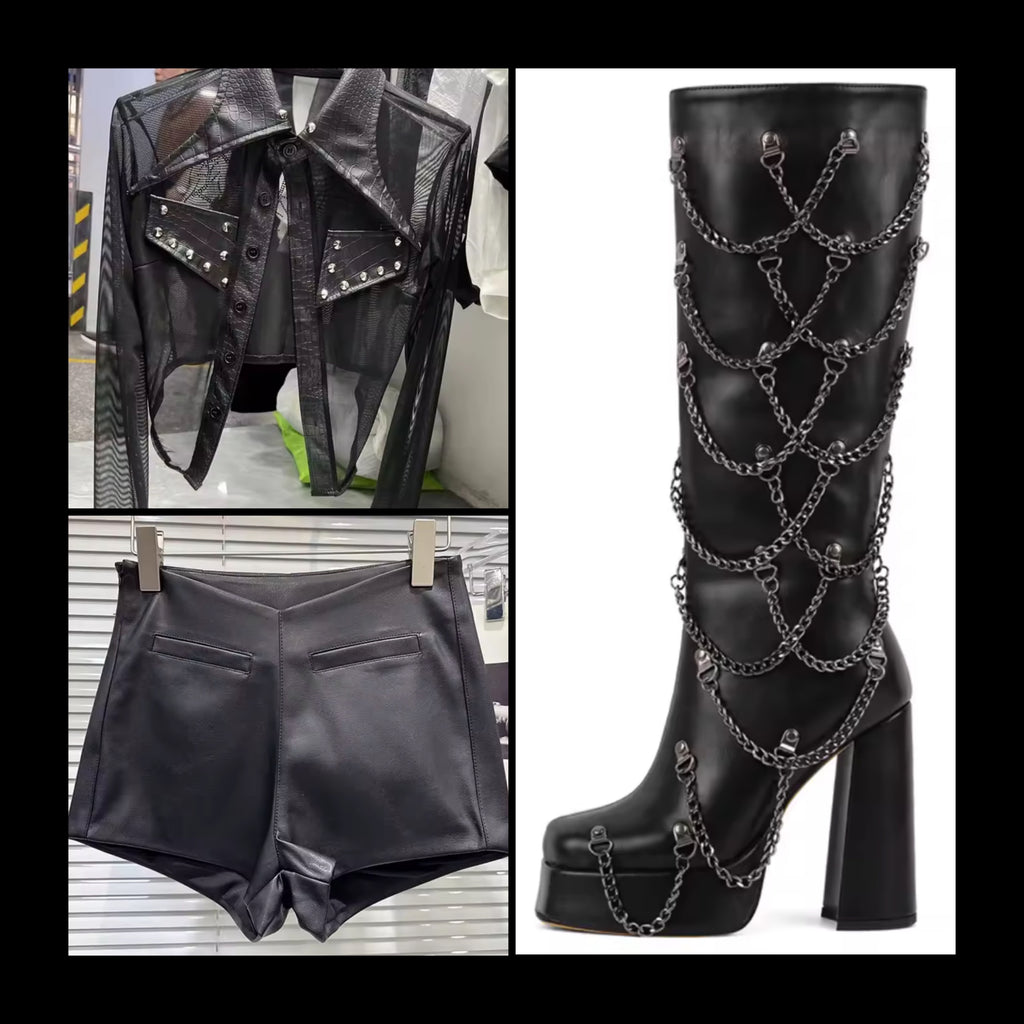 Women Black/White Fashion Faux Leather Shorts