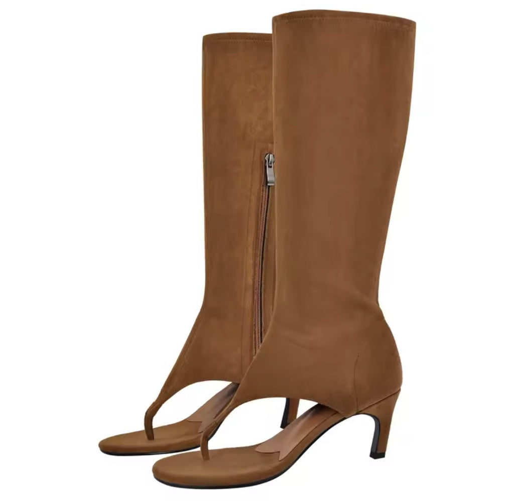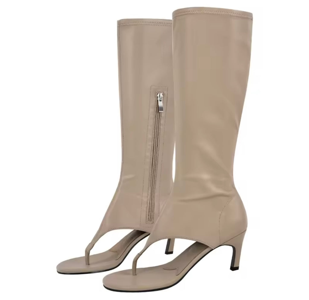 Women Color Fashion Open Toe Zip Up Faux Leather Boots