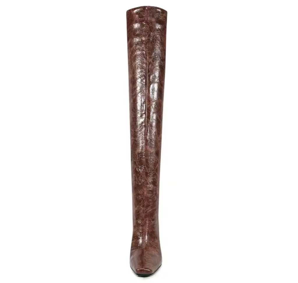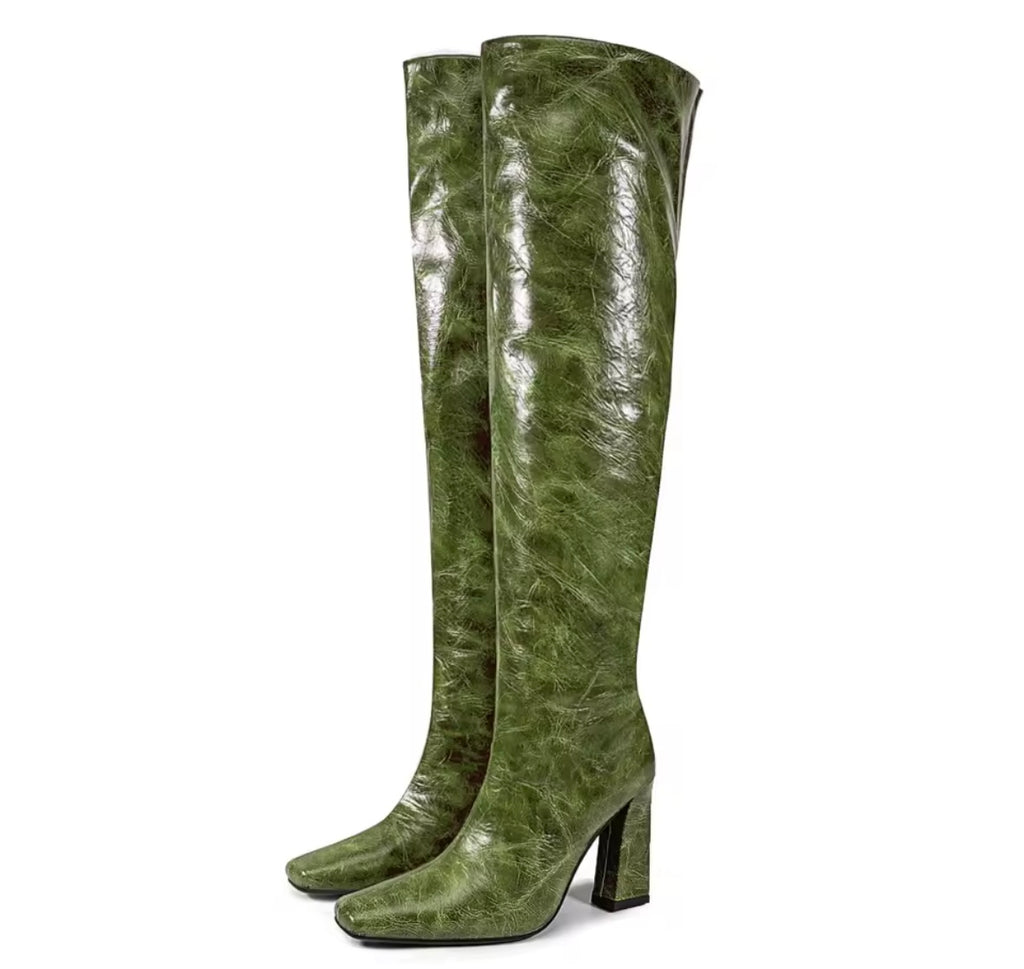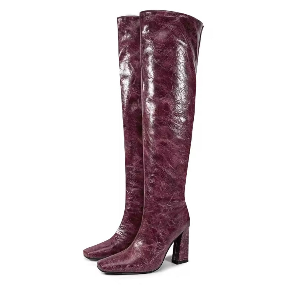 Women Color Platform High Heel Faux Leather Knee Length Boots