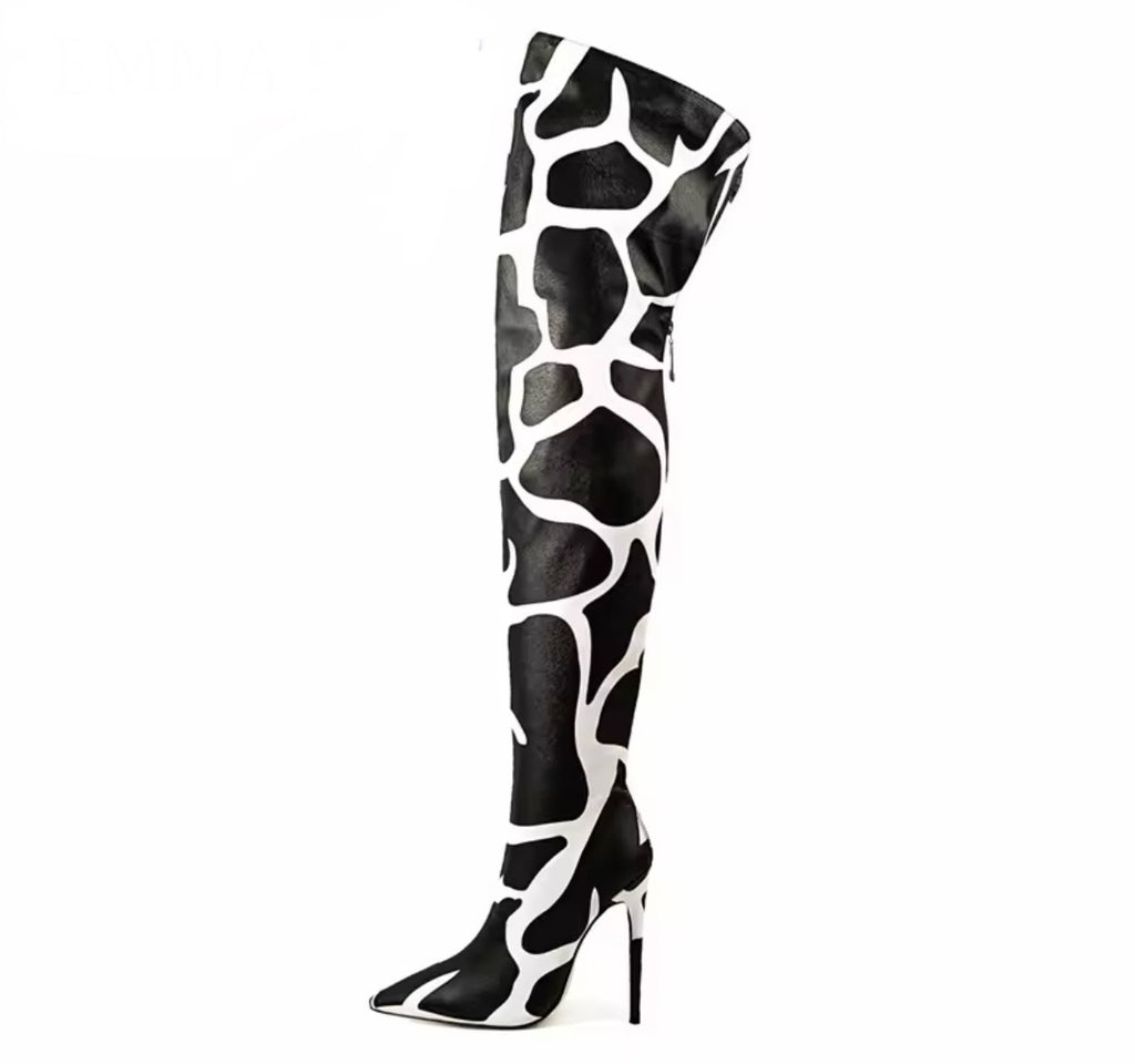 Women Color Platform High Heel Faux Leather Knee Length Boots