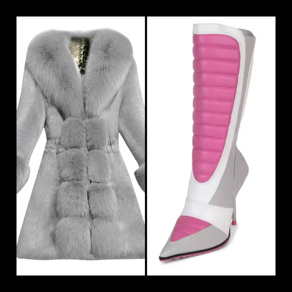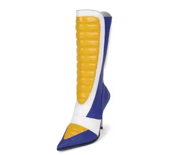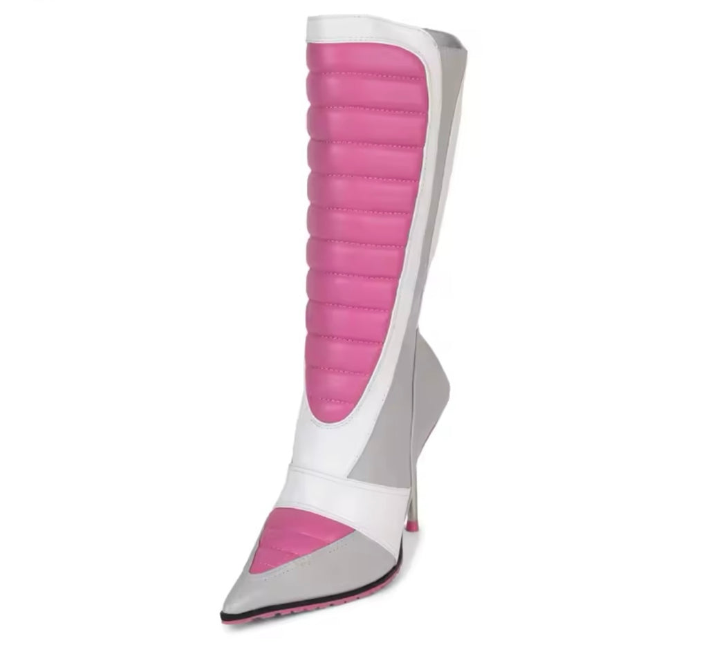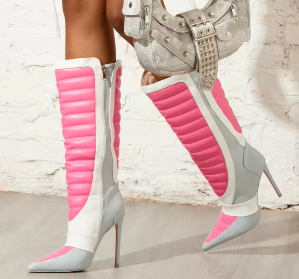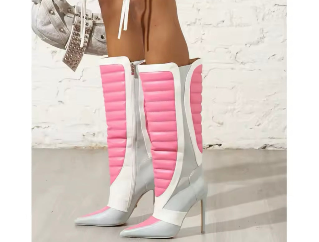 Women Color Platform High Heel Faux Leather Knee Length Boots