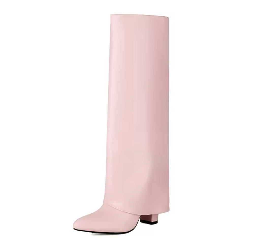 Women Color Platform High Heel Faux Leather Knee Length Boots