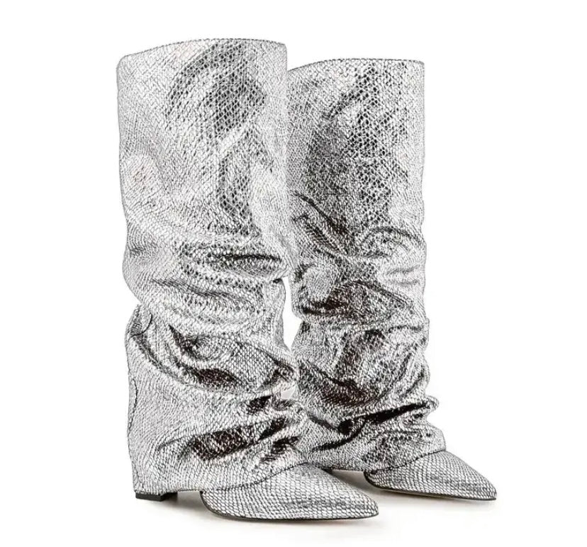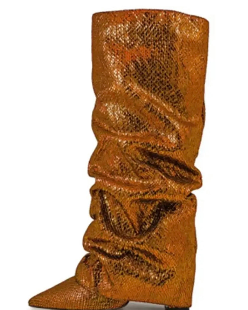 Women Color Platform High Heel Faux Leather Knee Length Boots