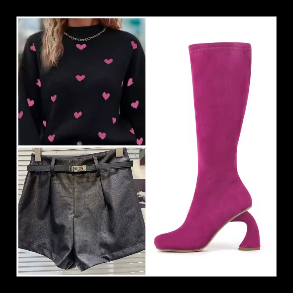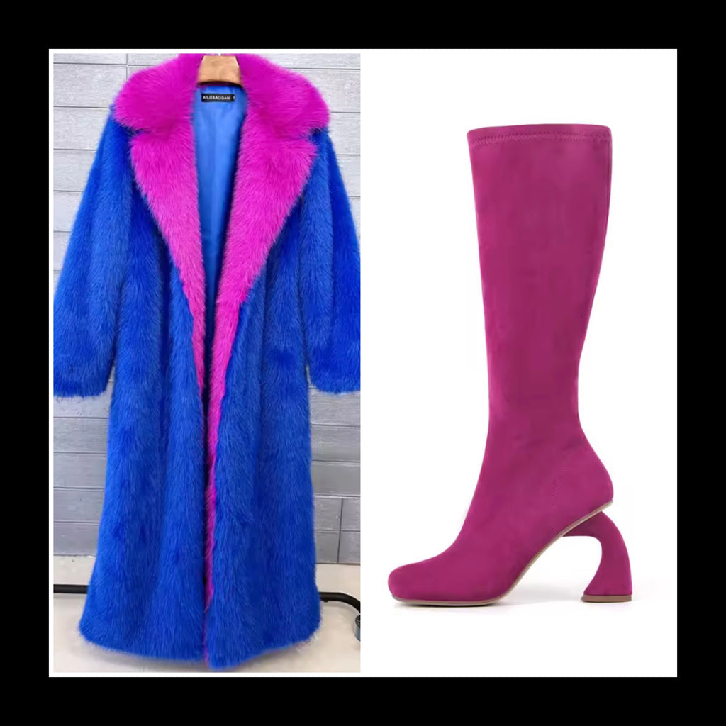 Women Color Square Toe Fashion Knee High Shaped Heel Boots