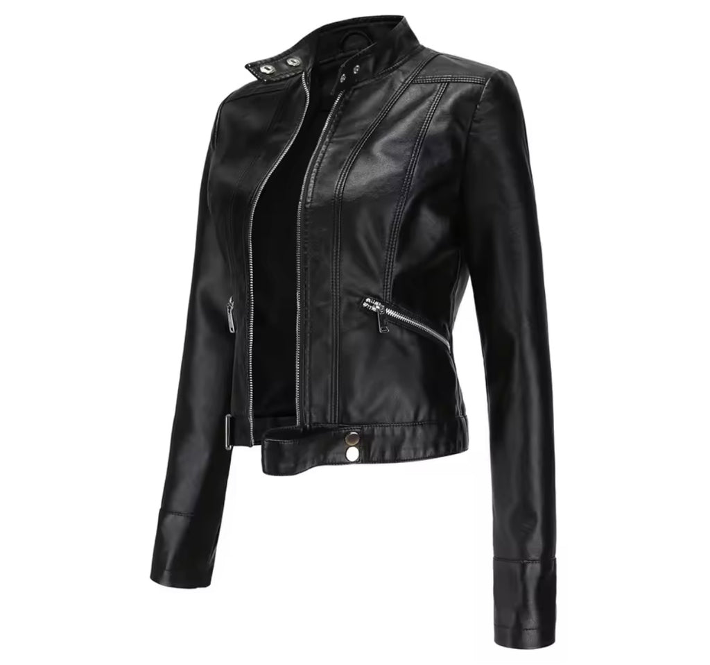Women Fashion Faux Leather Khaki Belted Trench Coat