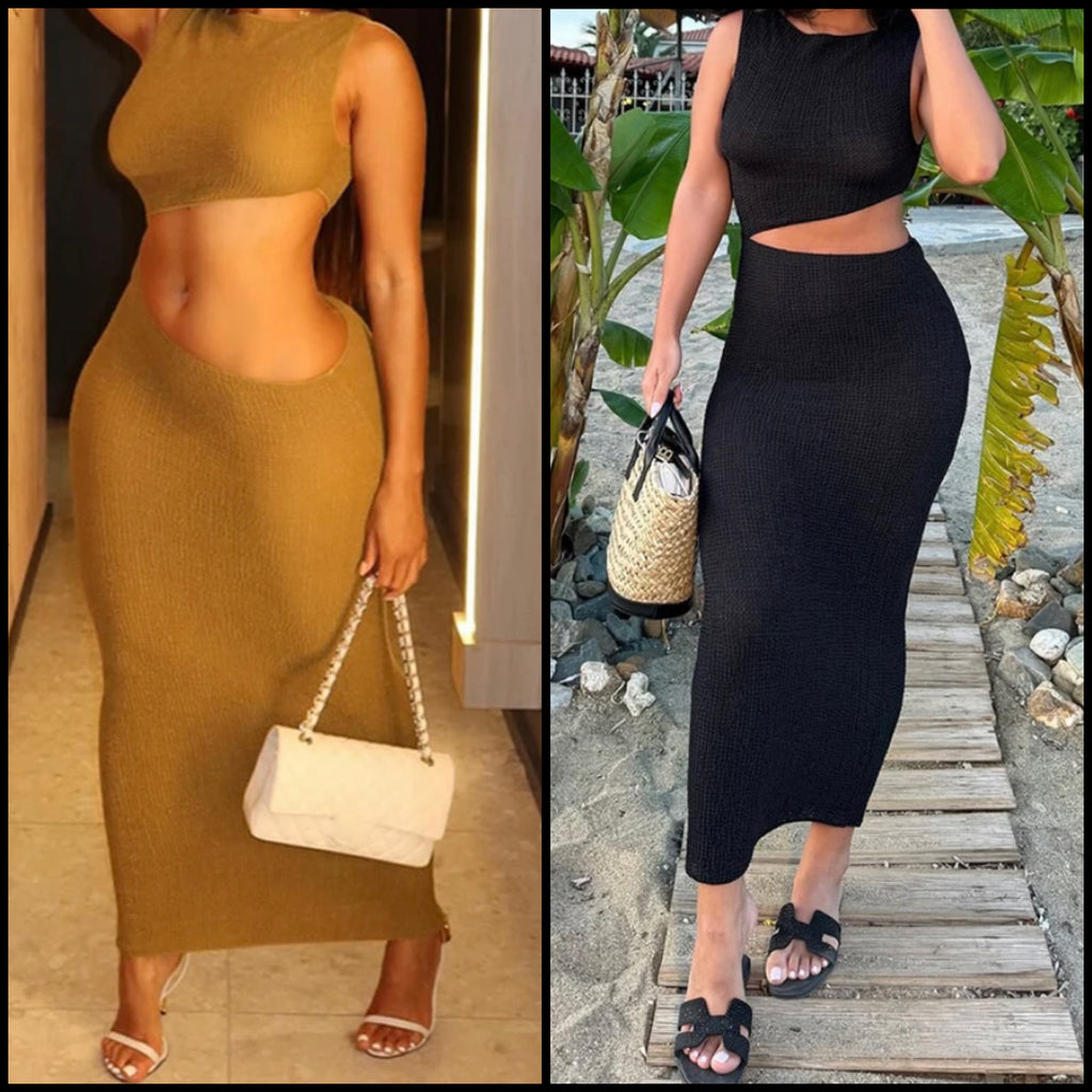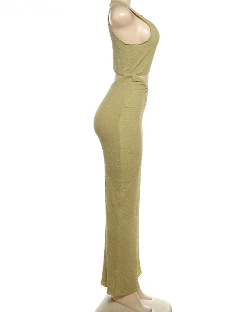 Women Cut Out Sexy Sleeveless Solid Color Maxi Dress