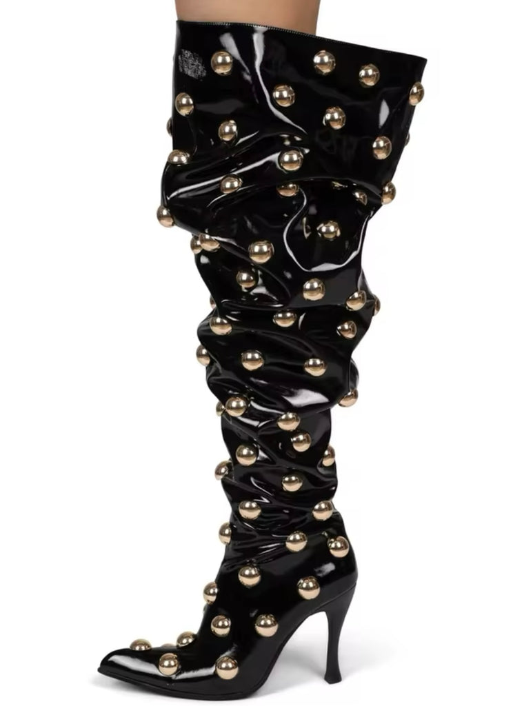 Women Fashion Black Gold Metal Over The Knee Boots