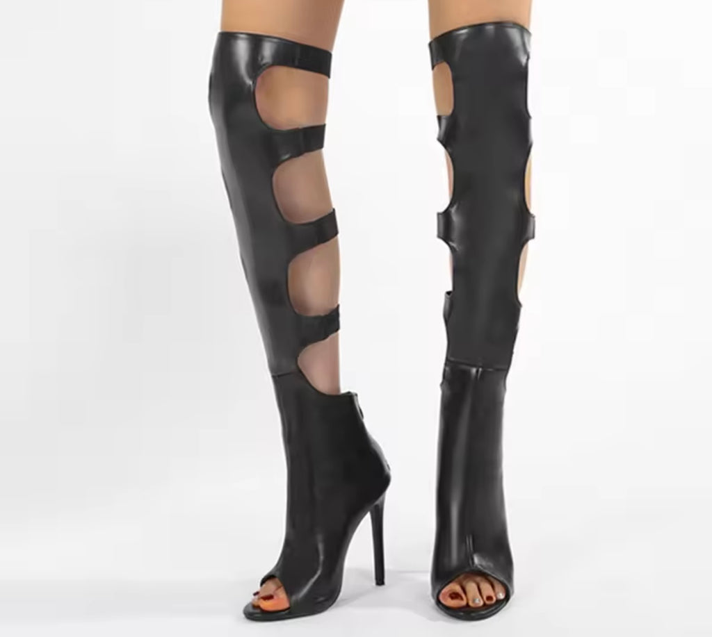 Women Color Platform High Heel Faux Leather Knee Length Boots
