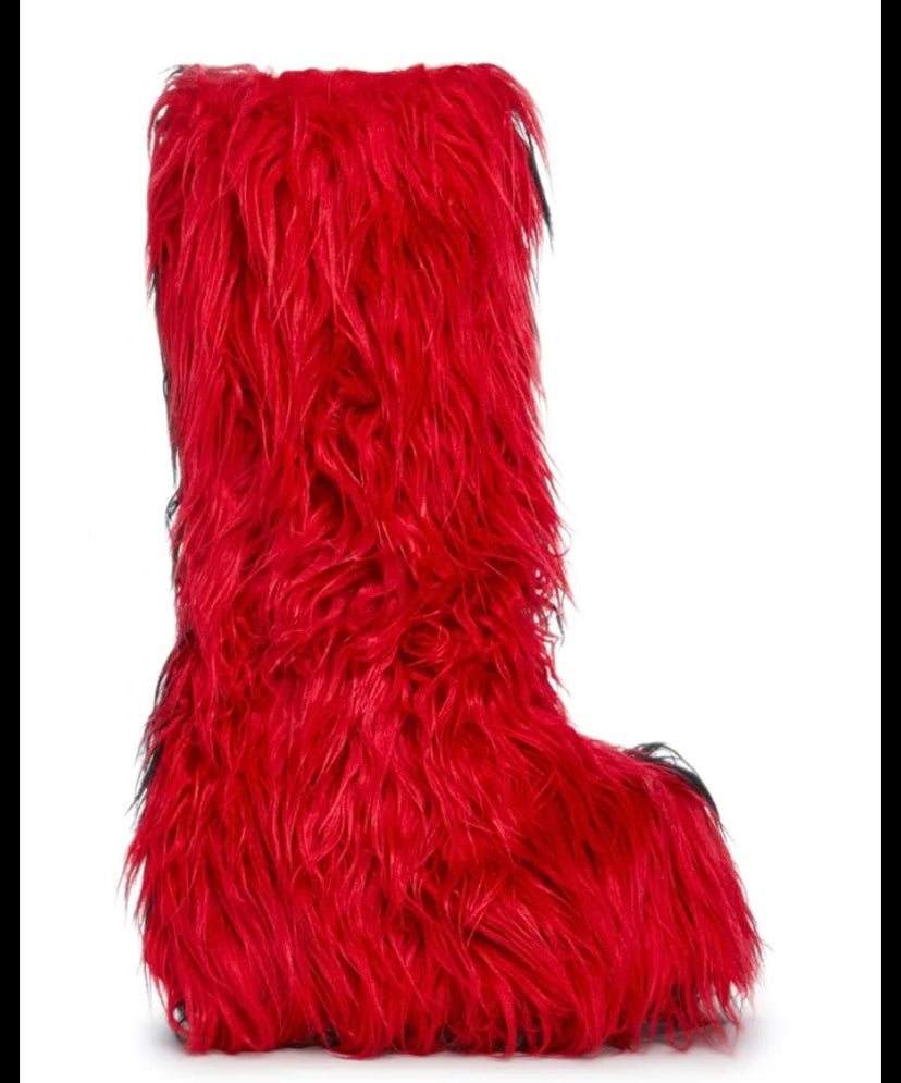Women Fashion Black/Red Faux Fur Platform Knee High Boots