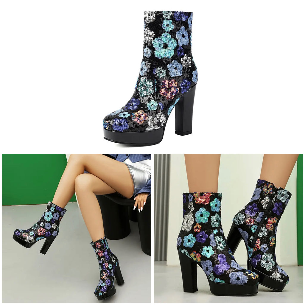 Women Fashion Square Toe Platform High Heel Ankle Boots