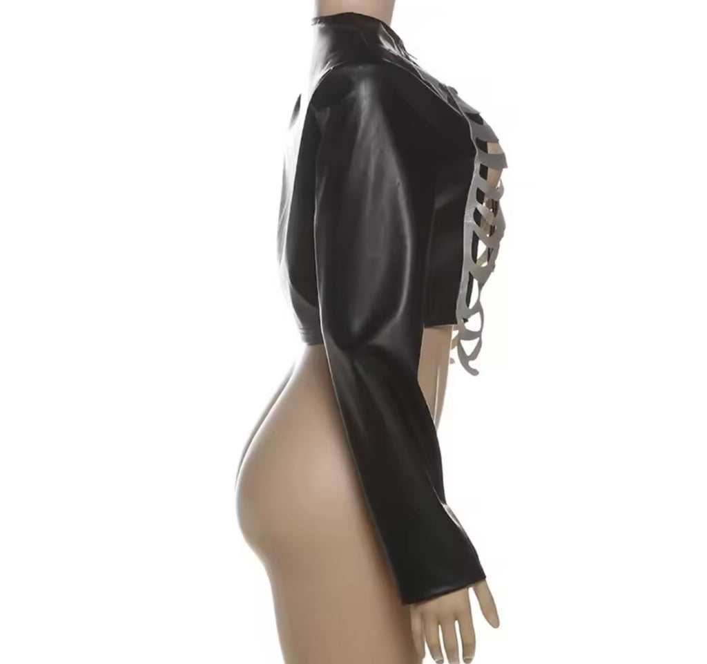 Women Fashion Faux Leather Khaki Belted Trench Coat
