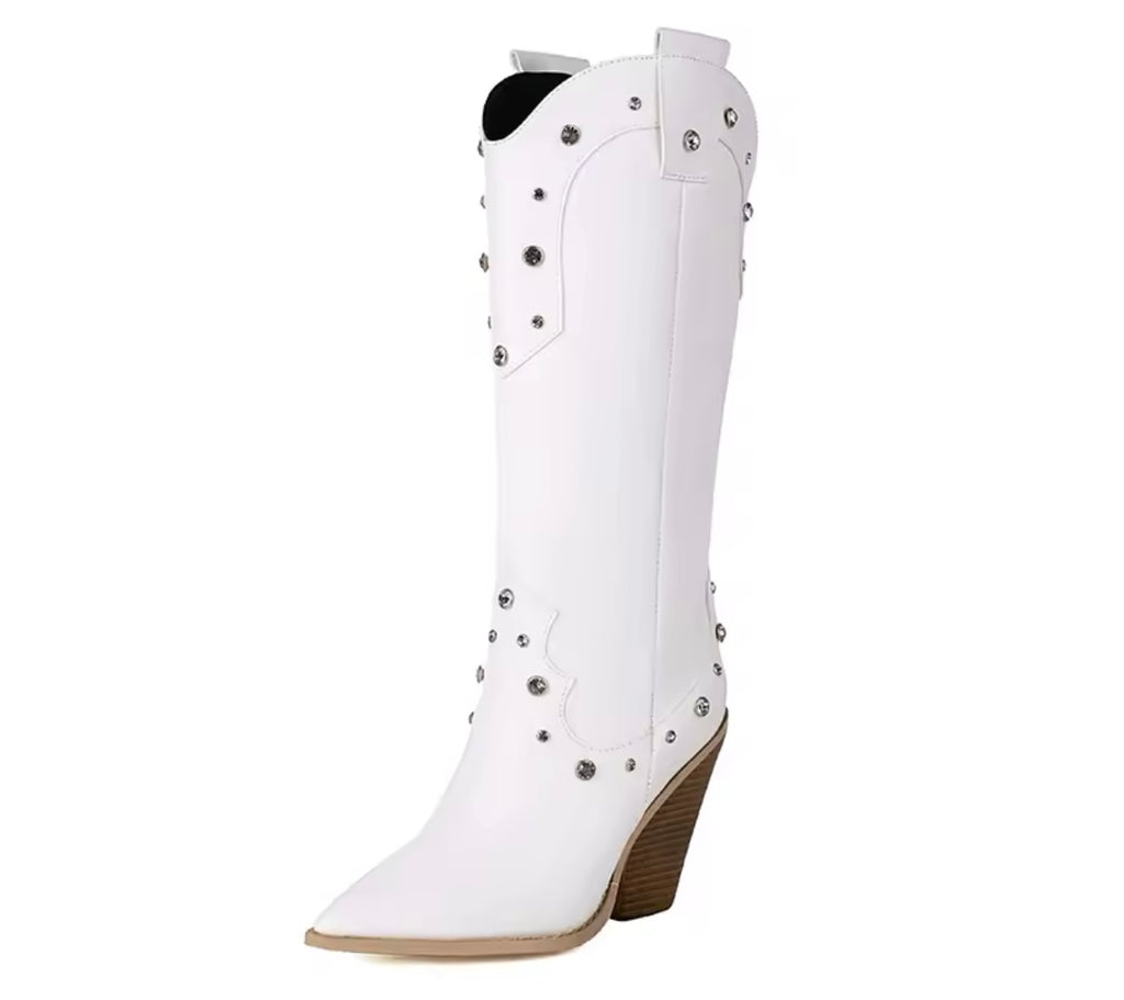 Women Color Platform High Heel Faux Leather Knee Length Boots