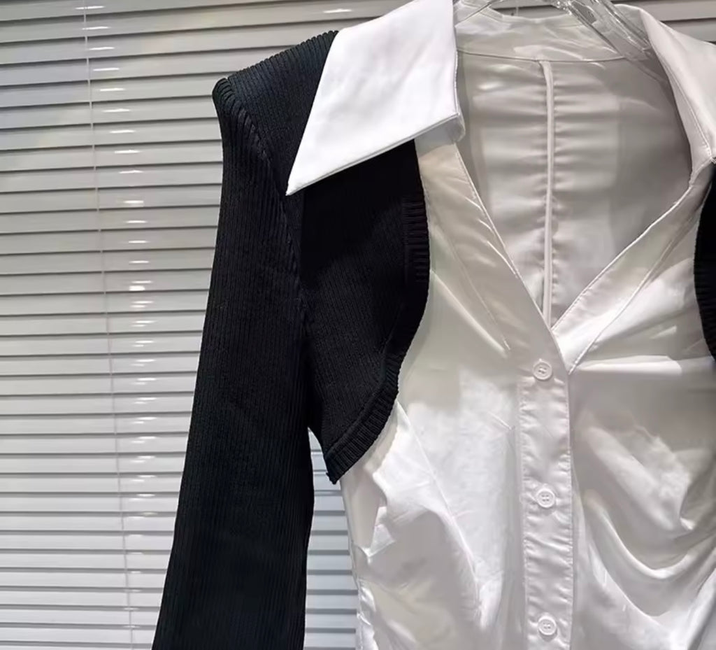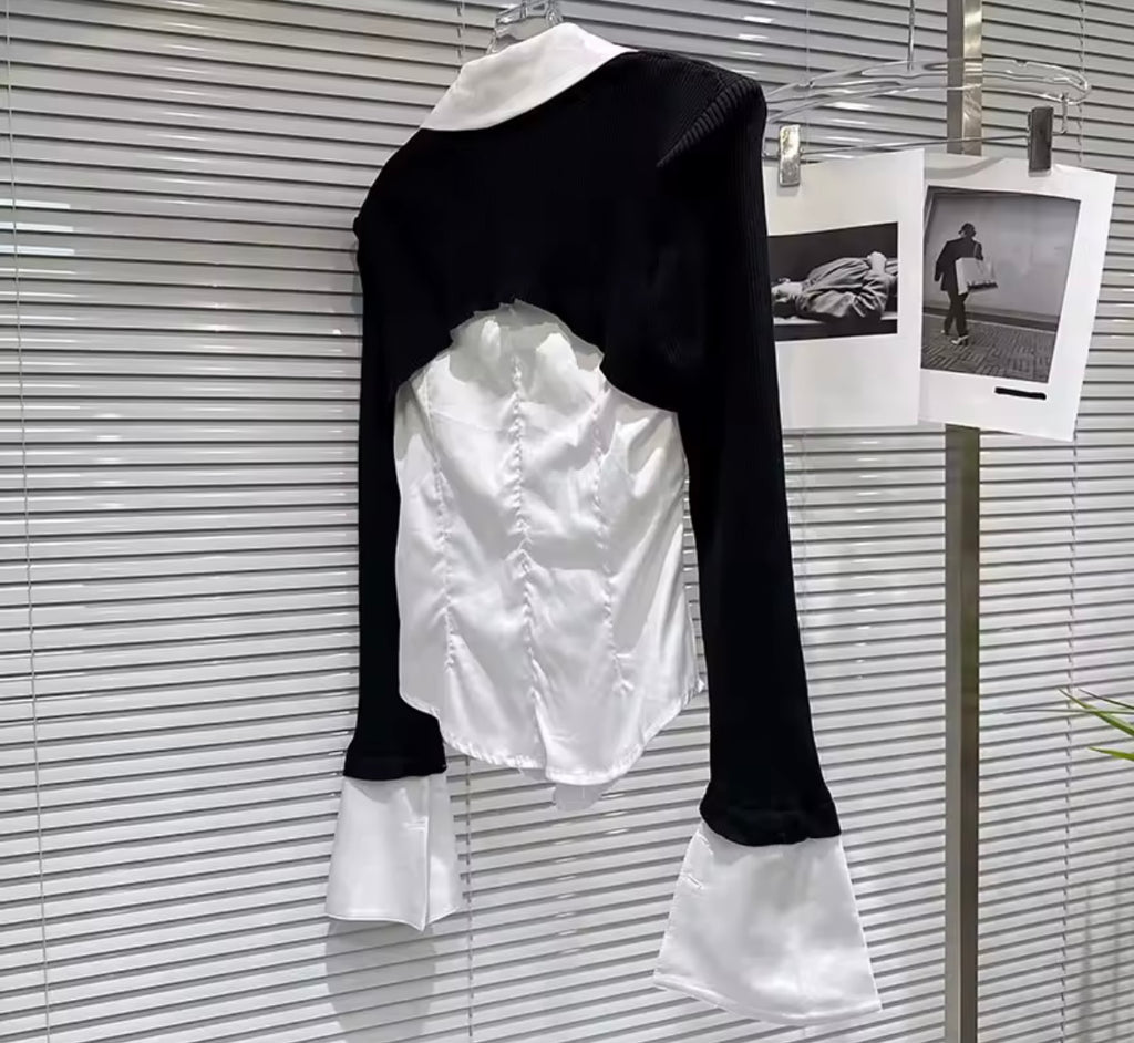 Women Fashion Sexy Black/White One Shoulder Crop Top