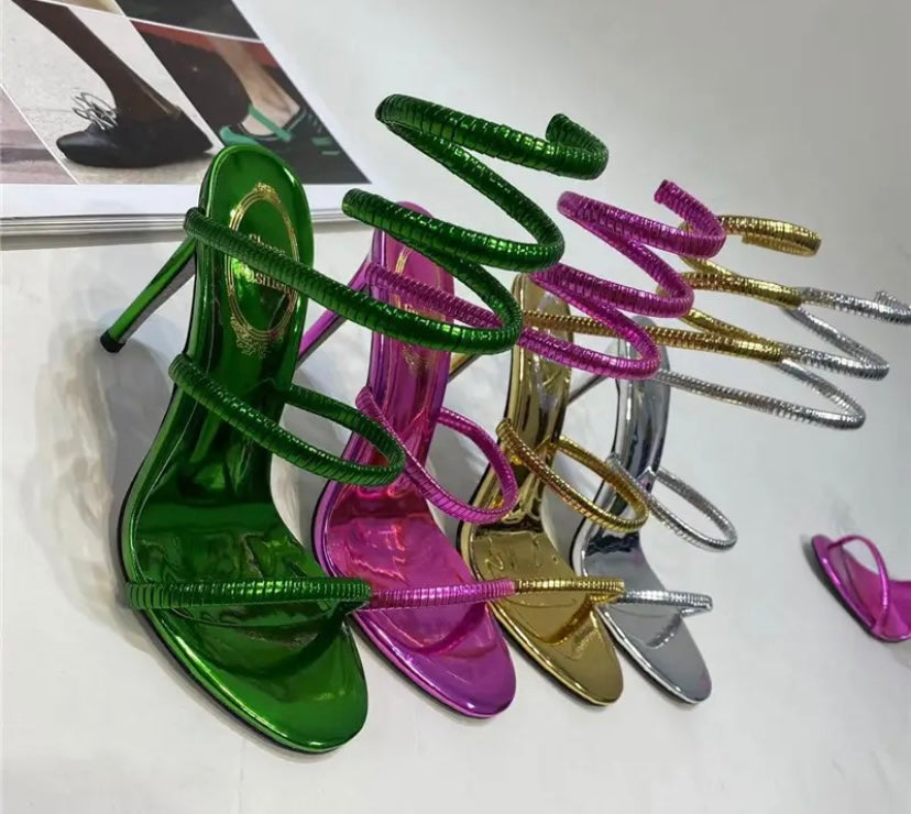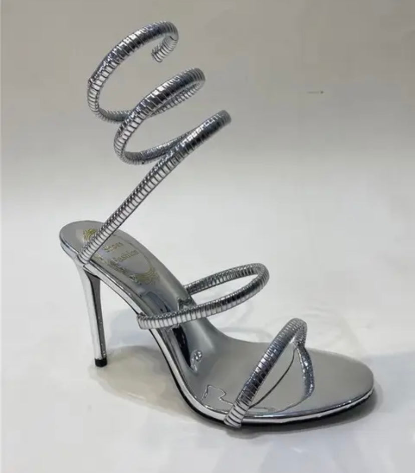 Women Fashion Color Metallic Wrap Around High Heel Sandals