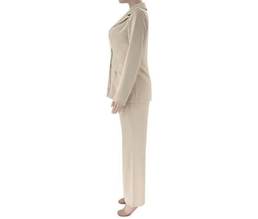 Women Fashion Color Patchwork Button Up Blazer Two Piece Pant Set
