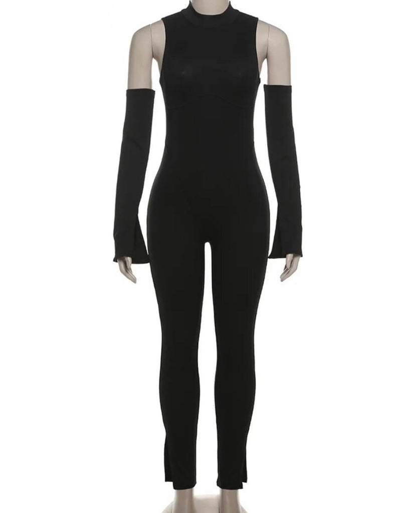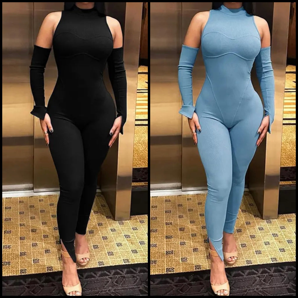 Women Sexy Solid Color Sleeveless Glove Ribbed Jumpsuit