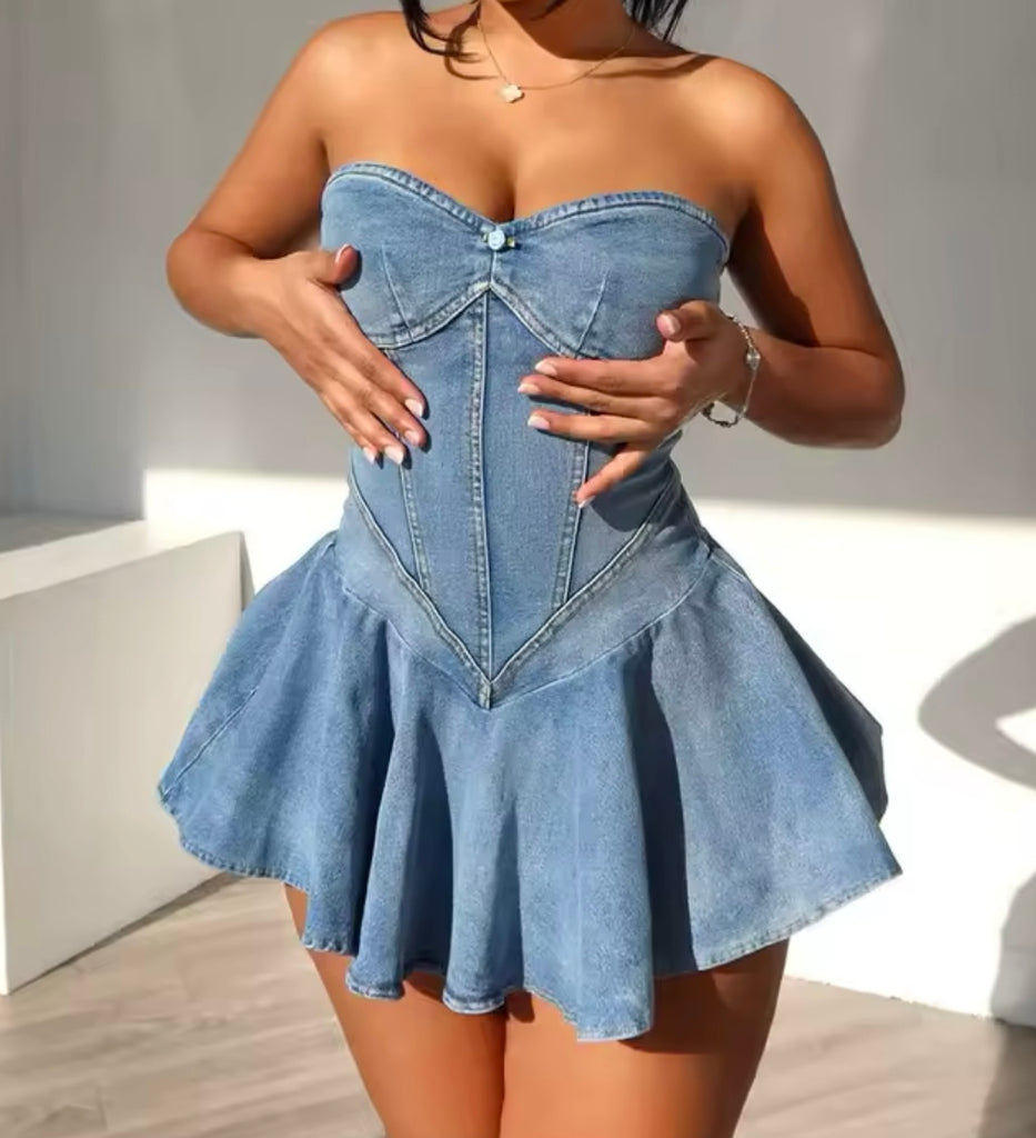 Women Sexy Strapless Denim Dress
