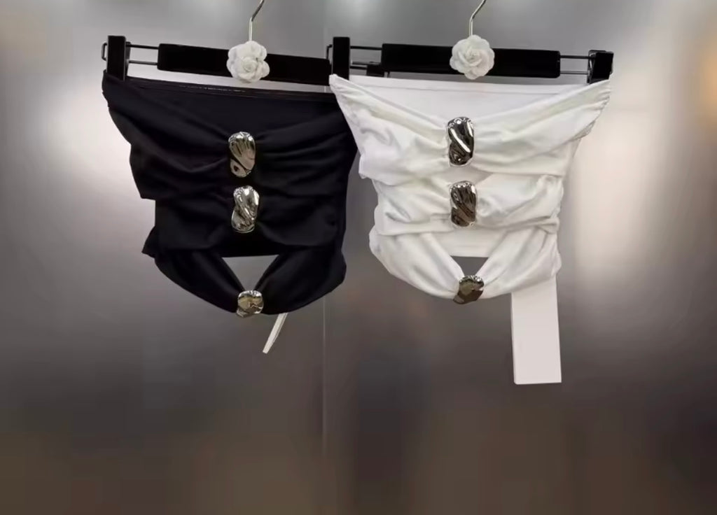 Women Fashion Sexy Black/White One Shoulder Crop Top