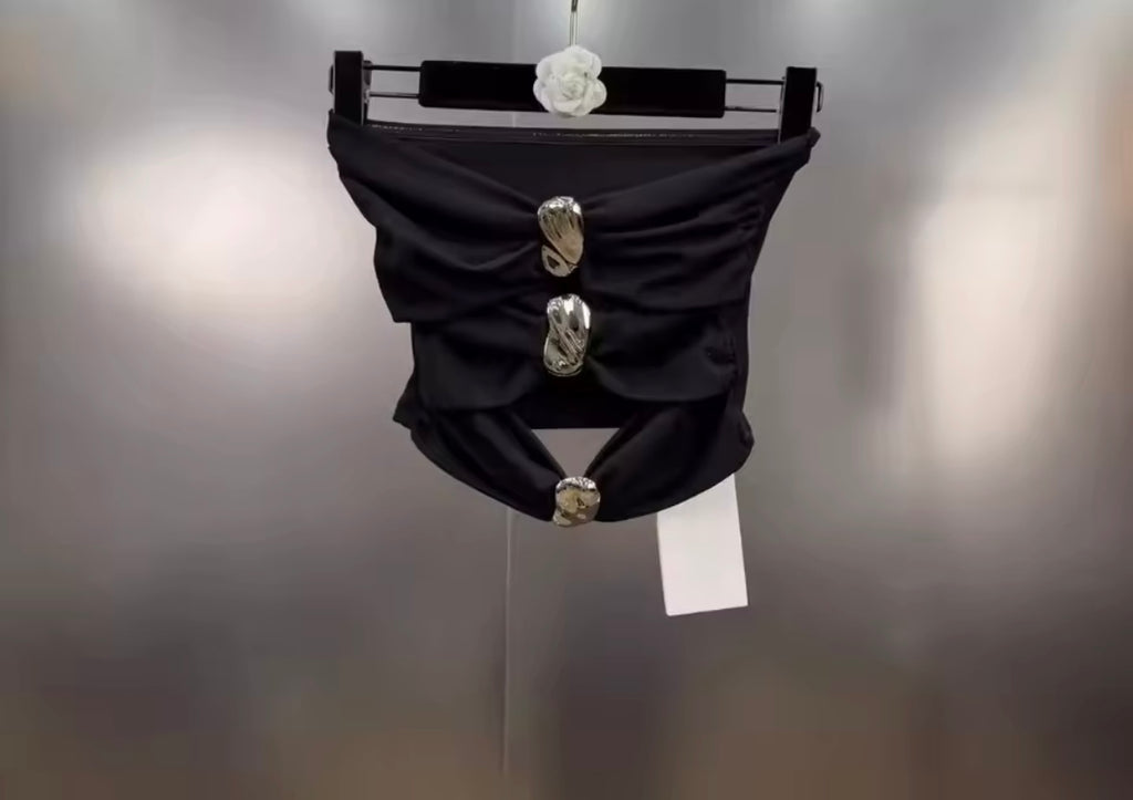 Women Rhinestone Tassel Black Fashion Tank Crop Top