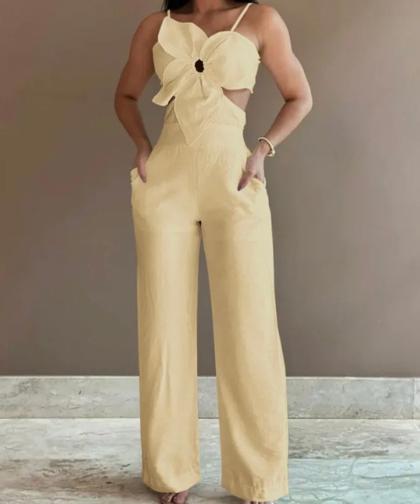 Women Sleeveless Floral Solid Color Sexy Fashion Jumpsuit