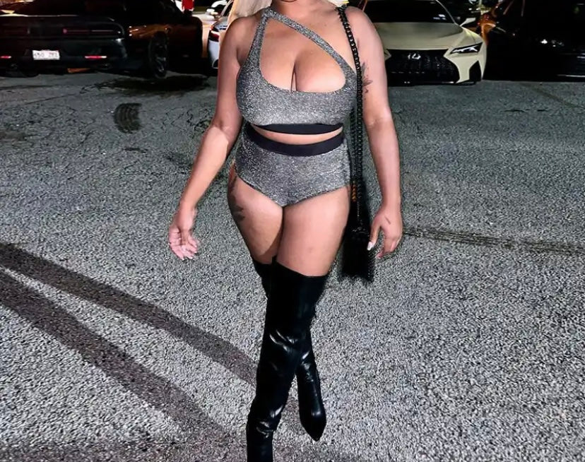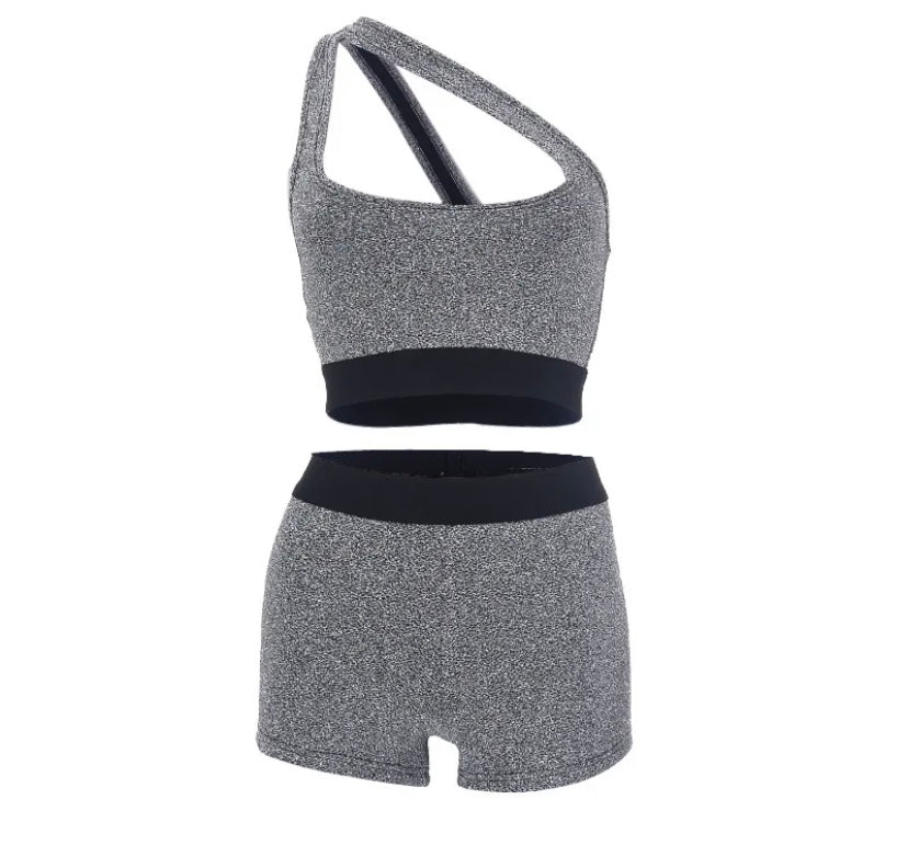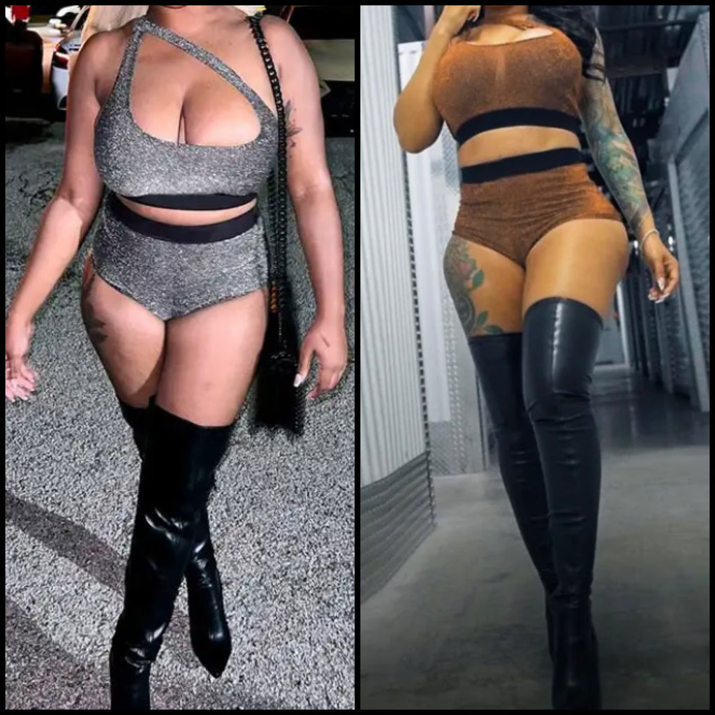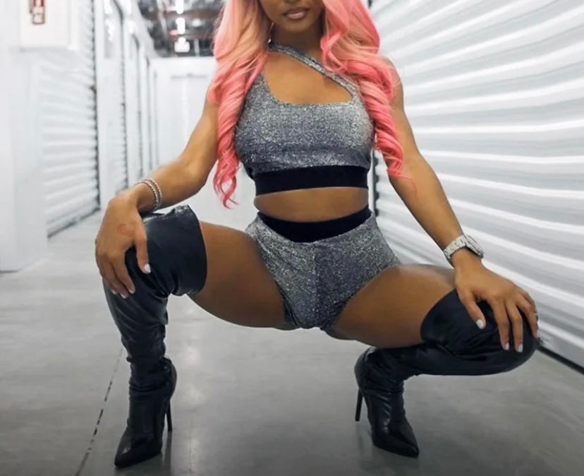 Women Sparkle Sleeveless Sexy Crop Two Piece Short Set