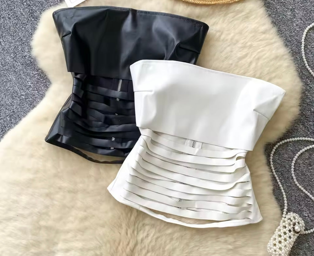 Women Fashion Sexy Black/White One Shoulder Crop Top
