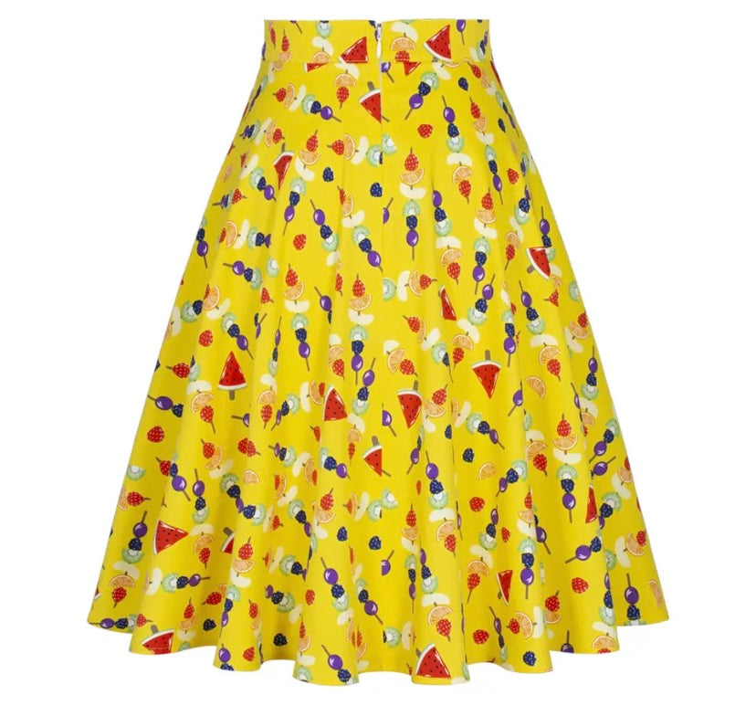 Women Yellow Fashion Fruit Print Pleated Skirt